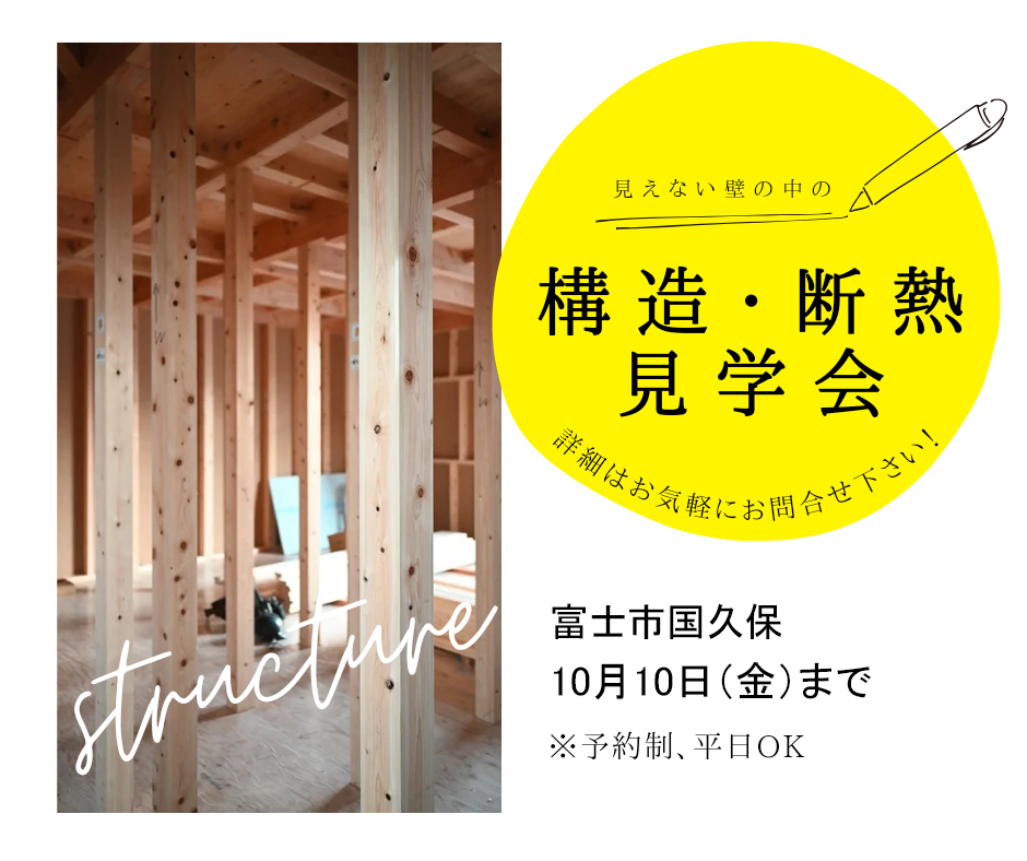 富士市国久保にて、予約制の構造・断熱見学会を開催します。
