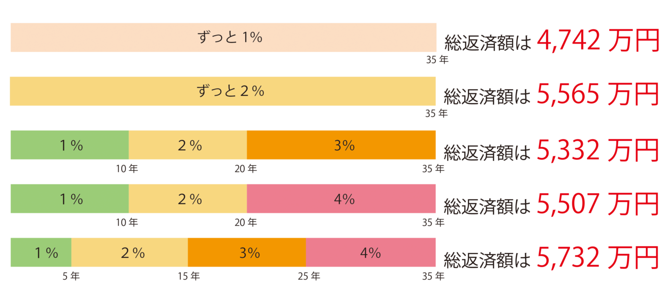 どのくらいの金利変動で総支払額が変わるかを下のグラフにまとめました
