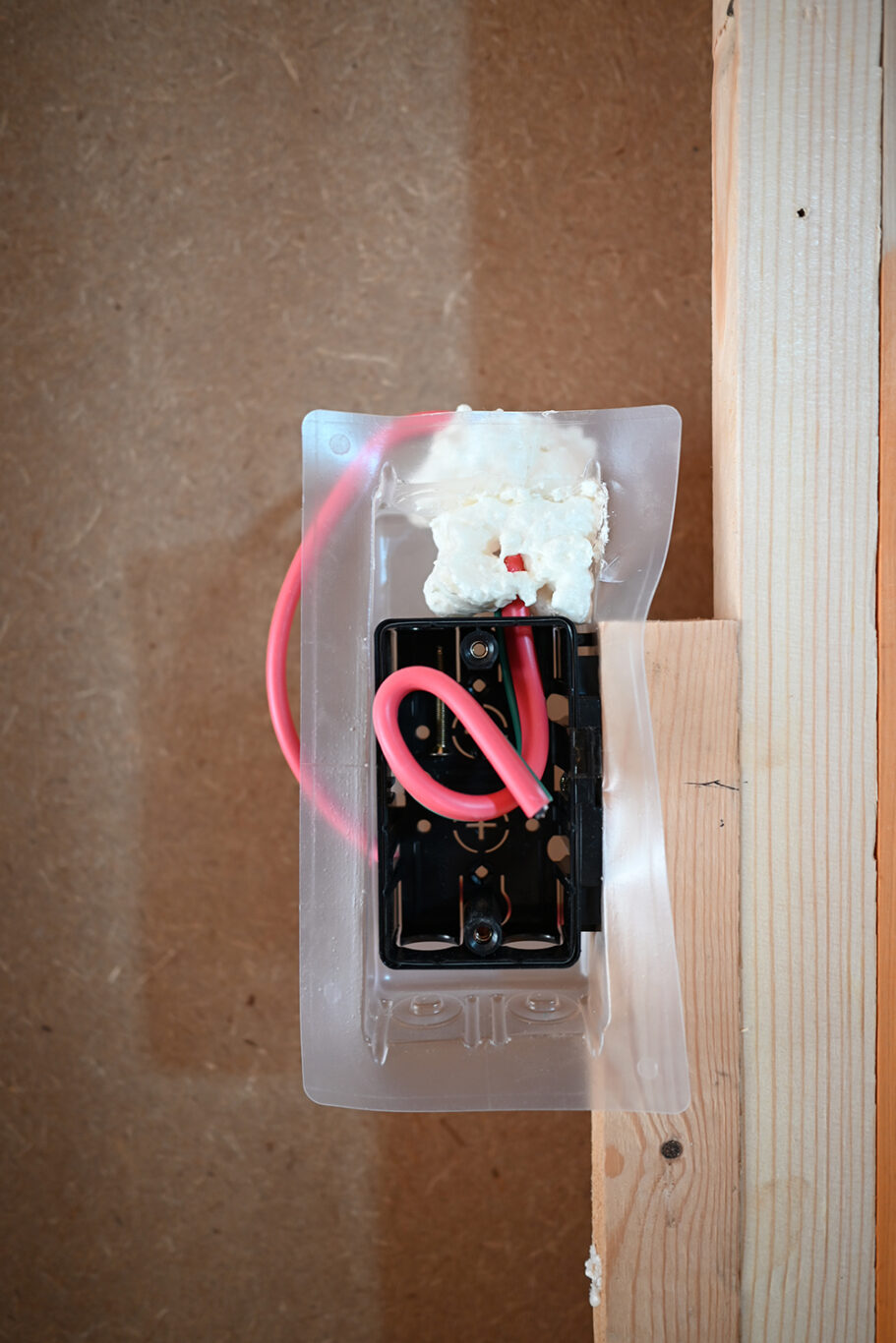地味に見えて重要なのが、コンセントボックスの気密処理です。