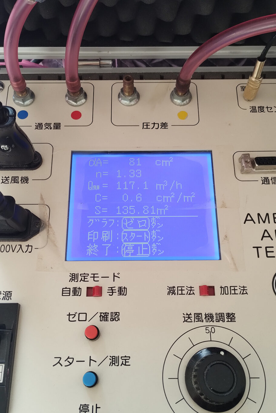 先日、お引渡しを控えたお住まいにて気密測定を実施しました。